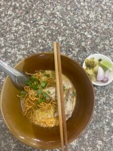 Over time, Northern Thai cooks adapted it with local spices, herbs, and condiments. The result is a dish that feels distinctly Thai yet carries the imprint of cross-border trade and migration.
